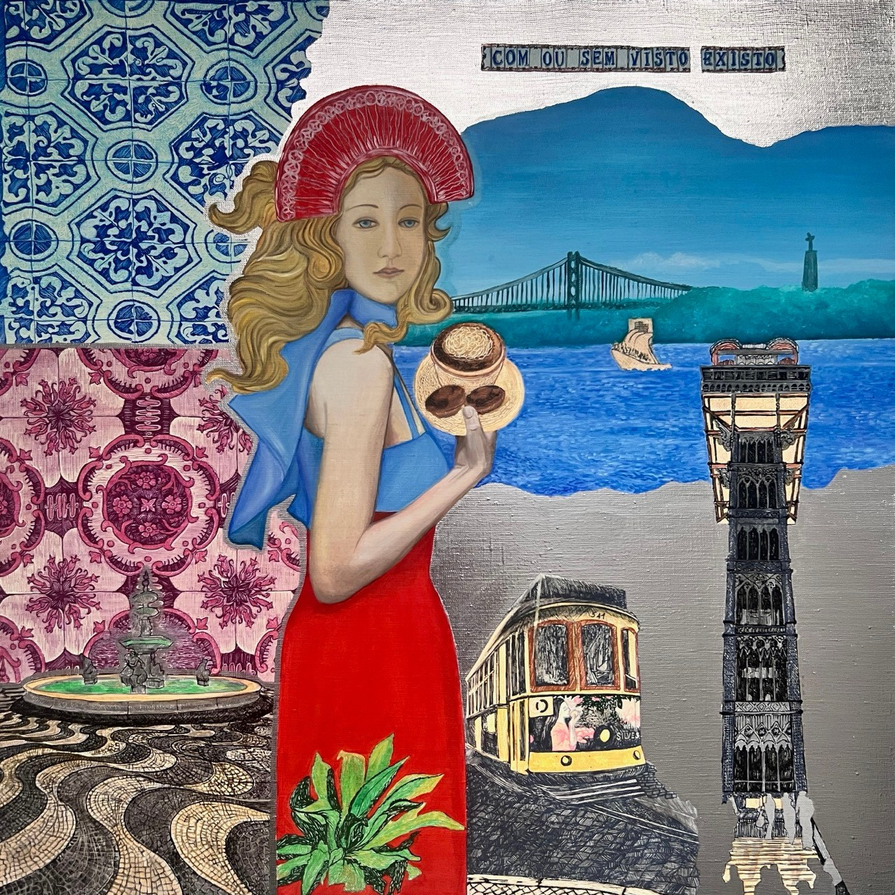 В центре каждой композиции русская девушка, культурный архетип, который, покидая границы родного, проходит через европейские города и их многослойную историю. Лица женщин — оммаж к известным картинам; так я воплощаю в образе свой статус художника.